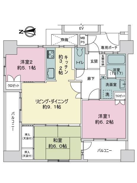 | 10階 | 3,180万円 | 72.91㎡ 9.69㎡ |
