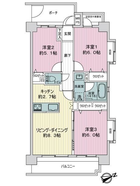 | 3階 | 3,280万円 | 59.09㎡ 11.2㎡ |