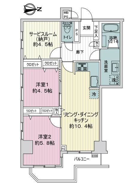 - 2LDK+S(納戸)