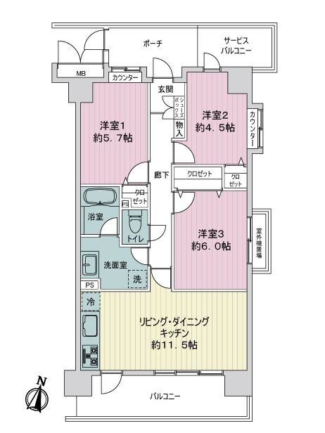 - 地上6階建て3階部分