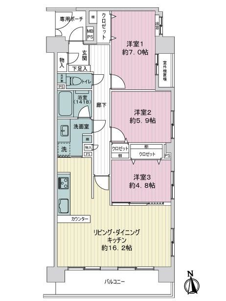 - 2LDK+S(納戸)