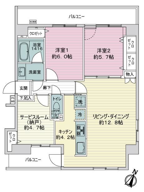 - 2LDK+S(納戸)