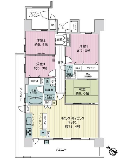 - 2LDK+S(納戸)