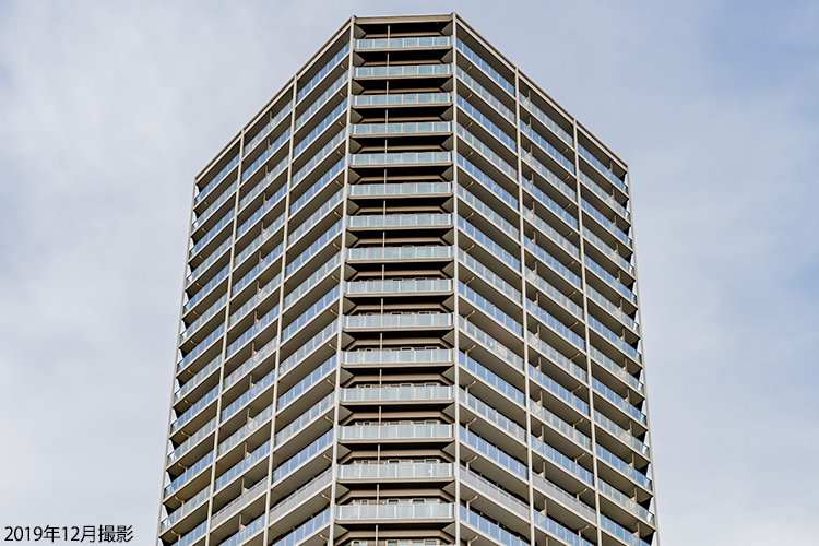 重厚なエントランスの上に伸びるタワーのデザインは、街のランドマークにふさわしい爽快感が演出されています。バルコニー面の外側には格子柄に数種類のガラスが配置されており、陽光に輝き、青空を映し込むデザインが施されています。見上げる角度や時刻、季節などによって様々な表情を見せ、駅前の景観をさらに洗練させるタワーになっています。