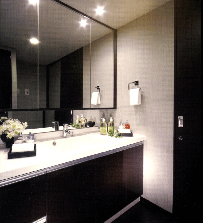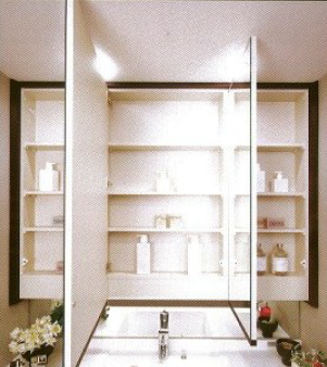 3面鏡の裏が収納棚になった洗面化粧台が採用されているため、化粧品やバスグッズなどの収納に使用することもできます。