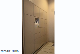 集合住宅玄関機に着荷表示付きの宅配ボックスが設置されています。留守中に届いた宅配物は24時間受取りが可能で、非接触キーで解錠することができます。