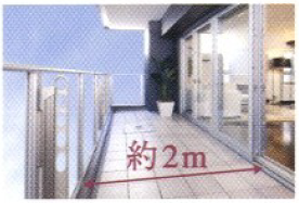 リビングダイニングに面したバルコニーは、奥行き約2mのひろびろとしたスペースです。
