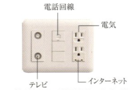 電源コンセント・テレビ[CATV・BS・110度CS(e2byスカパー!)]・電話端子を一体化した情報用コンセントが各居室に設置されています。配線を1カ所にまとめ、室内空間をスッキリと保つことができます。