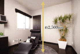 居室はスッキリとした室内空間を保つために、収納スペースがしっかりと備えられています。また、約2,500mmの天井高が確保された伸びやかな設計により、明るく爽やかな空間により寛ぎの時間が演出されています。