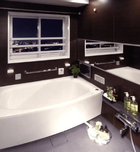 一日の疲れを癒してくれるゆったりとしたバスルームは、小さなお子さまから高齢の方まで安心して入浴することができるよう、バスタブのまたぎ高を低く抑えた低床式ユニットバスが採用されています。安全性・美しさ・機能性にこだわられた心地よいバスルームです。