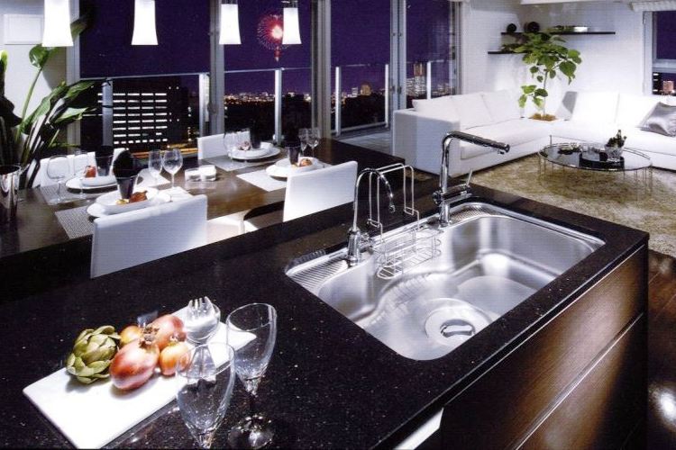 お客さまの声を生かしたライオンズ・オリジナル「L's KITCHEN」が導入されています。使いやすさや機能性といった使用感はもちろん、美しいフォルムやデザインへのこだわりも融合された、暮らしの幅を広げるキッチンです。