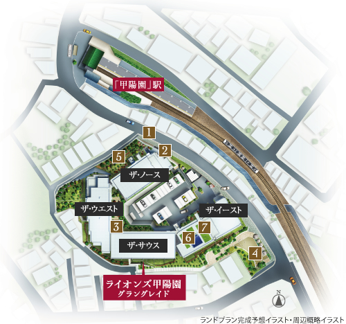 阪急「甲陽園」駅方面からの徒歩動線に配慮し、敷地北側にエントランスが配置されています。