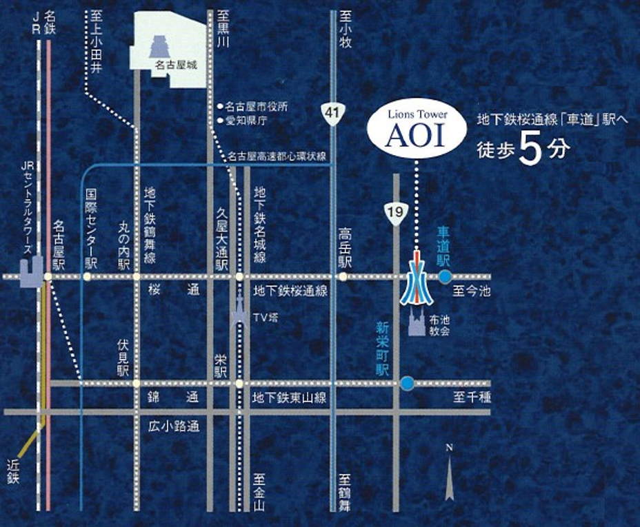 〈ライオンズタワー葵〉は、地下鉄桜通線「車道」駅まで徒歩5分。