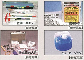 大きな災害に備えて、地下1階の防災用備蓄倉庫にレスキューセットや防塵マスクなどが備蓄されています。
