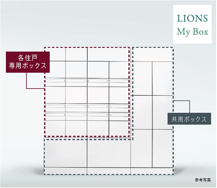 各住戸に対し、宅配会社が預け入れ可能な専用宅配ボックスを設けた「ライオンズマイボックス」を採用。