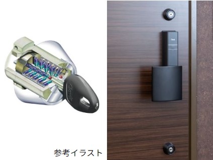 住戸玄関キーはピッキング被害の防止対策として、ディンプルキーを採用。更に玄関ドアは2箇所で施錠できるダブルロックを採用。